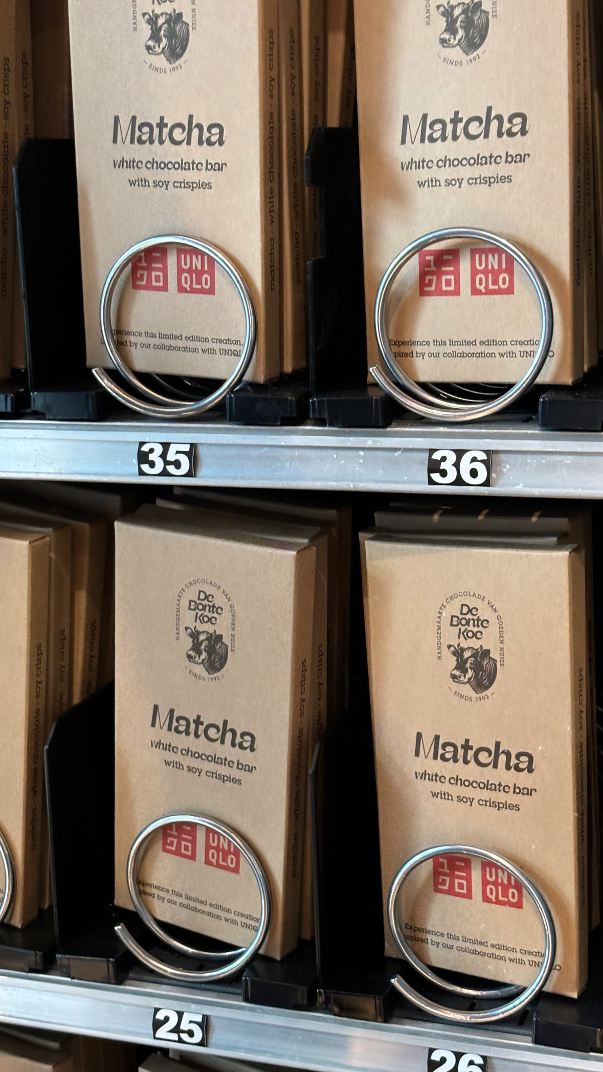 De afbeelding in de bijlage kunt u vrij van rechten gebruiken bij publicatie over dit persbericht. Foto: UNIQLO x DBK Matcha repen in de automaat bij Uniqlo